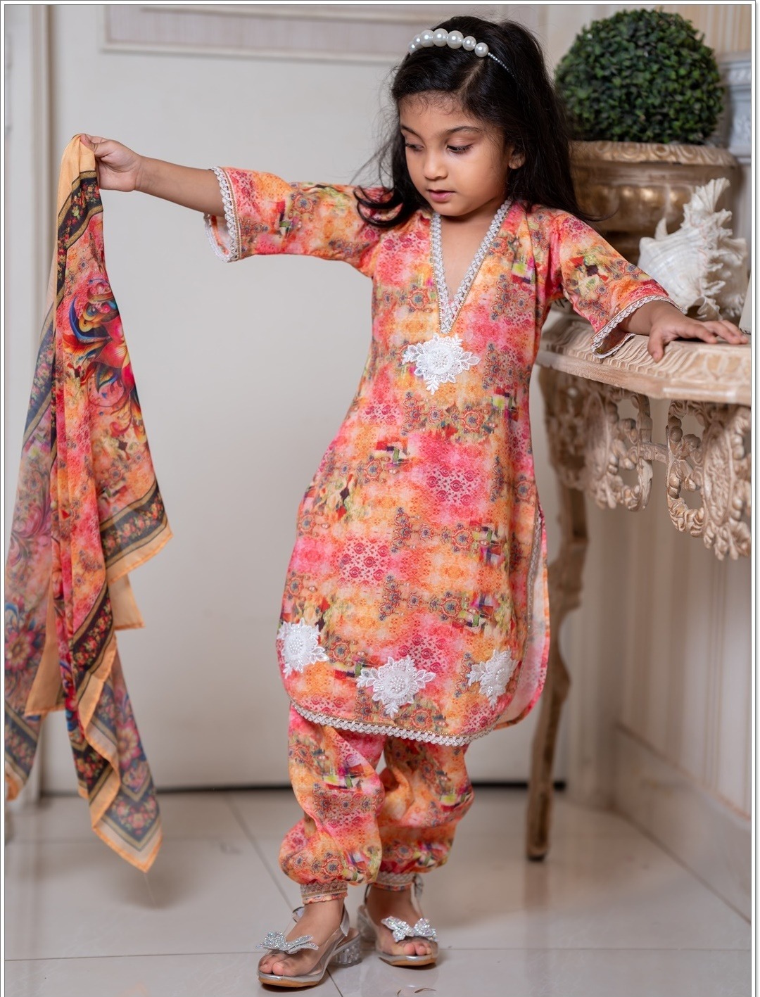 This beautiful baby three-piece set includes a kameez, salwar, and matching orna, thoughtfully designed for your little one’s comfort and style. Made from soft, breathable, and baby-friendly fabric, it feels gentle on delicate skin. Perfect for everyday wear or special occasions, this outfit gives a traditional yet adorable look while ensuring all-day comfort 💕
