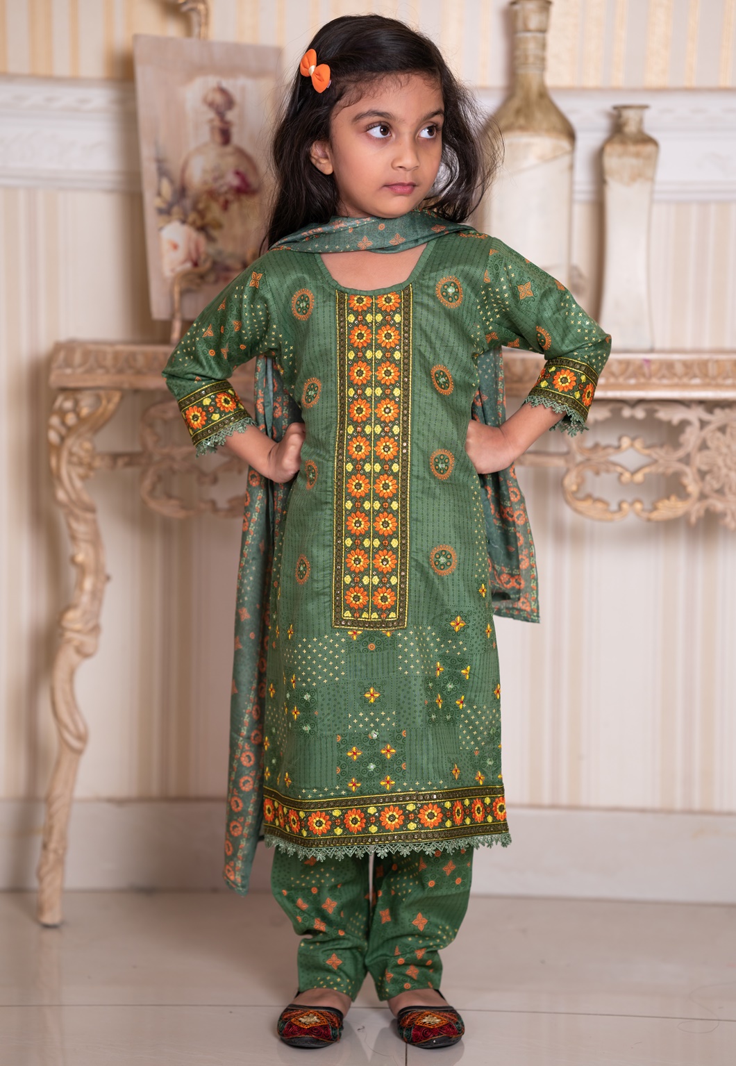 This beautiful baby three-piece set includes a kameez, salwar, and matching orna, thoughtfully designed for your little one’s comfort and style. Made from soft, breathable, and baby-friendly fabric, it feels gentle on delicate skin. Perfect for everyday wear or special occasions, this outfit gives a traditional yet adorable look while ensuring all-day comfort 💕