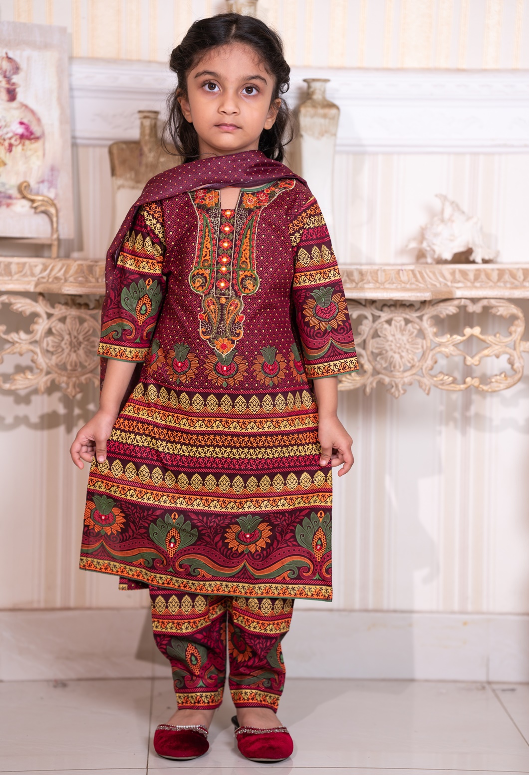 This beautiful baby three-piece set includes a kameez, salwar, and matching orna, thoughtfully designed for your little one’s comfort and style. Made from soft, breathable, and baby-friendly fabric, it feels gentle on delicate skin. Perfect for everyday wear or special occasions, this outfit gives a traditional yet adorable look while ensuring all-day comfort 💕