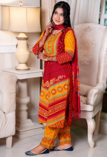 • স্টাইলিশ ওড়না: সাথে রয়েছে ডিজাইন সমৃদ্ধ ওড়না, যা পুরো সেটকে করেছে আরও এক্সক্লুসিভ।