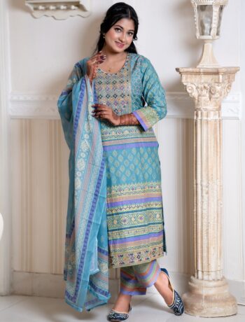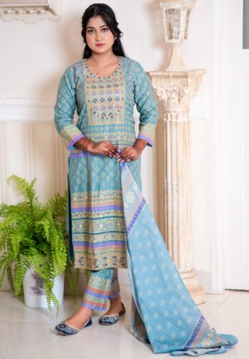 আপনার স্টাইল এবং আরামের নিখুঁত সমন্বয়ে তৈরি হয়েছে এই Elegant Three-Piece। প্রিমিয়াম রেওয়ান কটনে বানানো এই পোশাকটি হালকা, আরামদায়ক এবং দৃষ্টিনন্দন। এর চমৎকার এম্ব্রয়ডারি, স্কিন প্রিন্ট এবং কারচুপির কাজ আপনাকে করে তুলবে যে কোনো অনুষ্ঠানে আলাদা এবং প্রশংসনীয়।