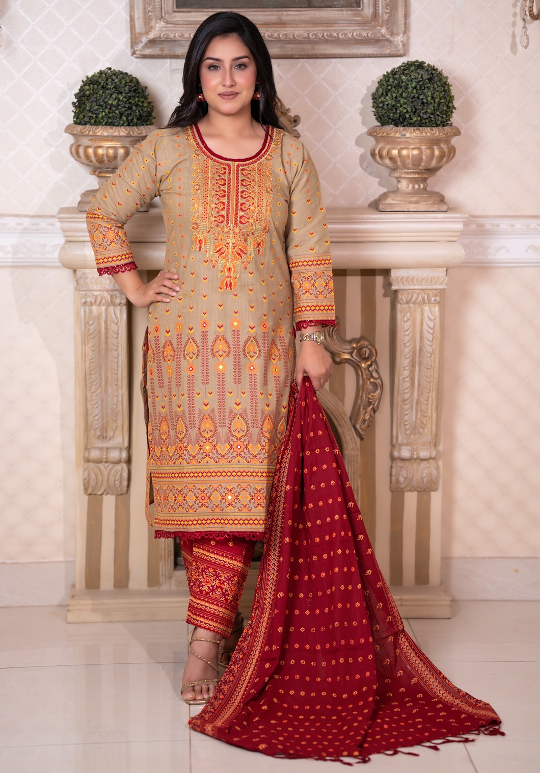 Includes: Kameez, Salwar & Orna
